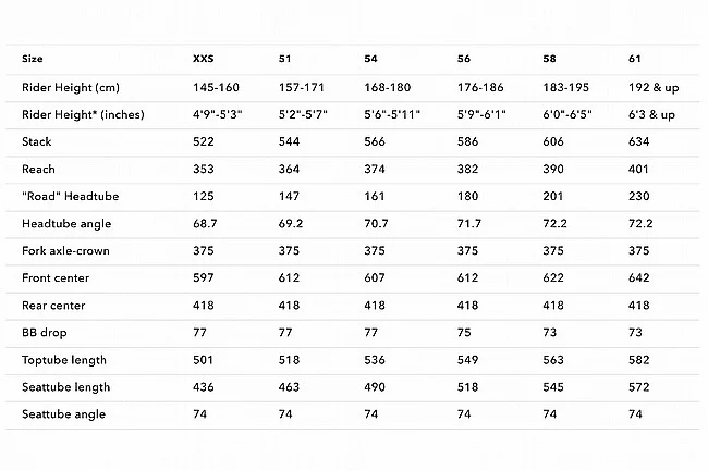 • Crankset – Shimano GRX FC-RX610-2 46/30 12s (48: 165mm, 51: 170mm, 54&56: 172.5, 58&61: 175mm).