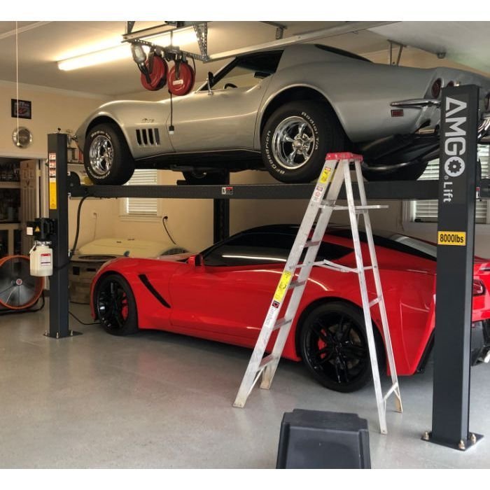 The AMGO 408-P is a true space-saving powerhouse. It is the perfect service lift for shops and home car ports with limited floor space with performance maximization in mind. The 408-P requires no special foundation or complicated installation and is about the size of a typical parking space. These features, and more, make the AMGO 408-P one of the best commercial or private use lifts in the world. The 408-P is the perfect choice for commercial shops or residential car ports trying to save space with a capacity of 8,000 lbs.