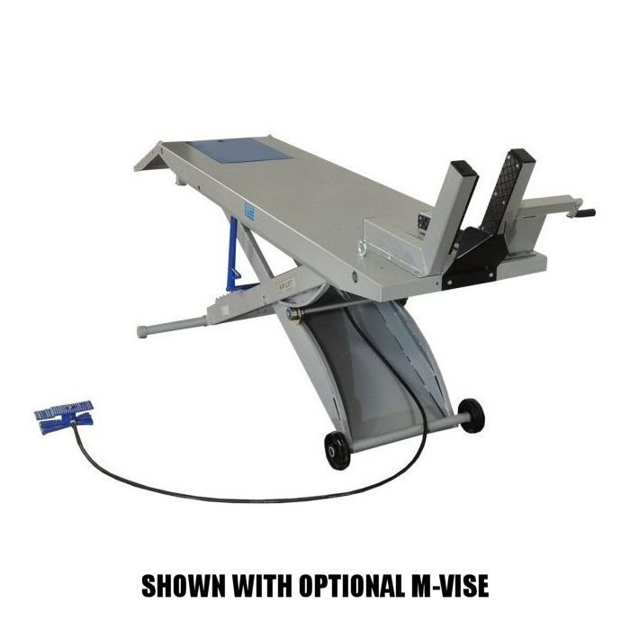 The ASEplatinum M-1000C Pneumatic Motorcycle Lift offers all the popular features and optional accessories. It has 1,000 lbs. lifting capacity and is an air powered lift bench that is perfect for making general repairs to all kinds of vehicles, including motorcycles, ATV’s, snowmobiles, lawn tractors, jet skis, and more.