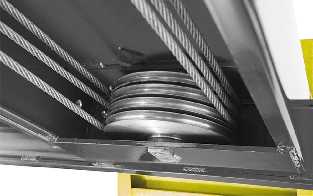 - Fully enclosed lifting cables, safety locks, and sheaves
