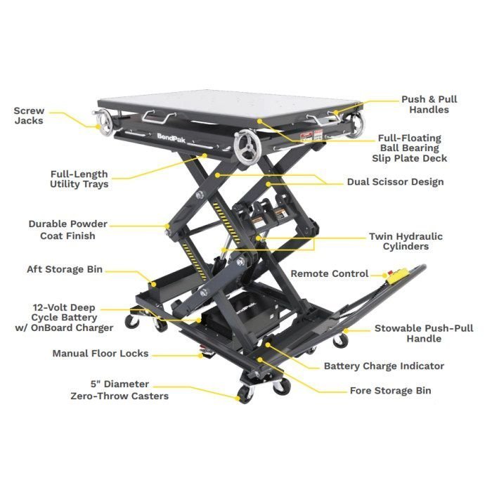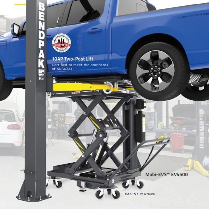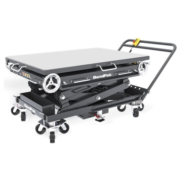 The BendPak EVS4500 EV Battery and Powertrain Lift Table is the latest in BendPak’s revolutionary Mobi-EVS line of full-rise battery powered mobile scissor lift tables and is perfectly suited for Electric Vehicle Service and EV Battery Pack replacement. With it, you’ll be able to safely handle critical vehicle components weighing up to 4,500 lbs. With a compact design, this space-saving lift table can be easily transported anywhere in the workplace, making the EVS4500 ideal for multi-bay facilities or workplaces with confined areas.