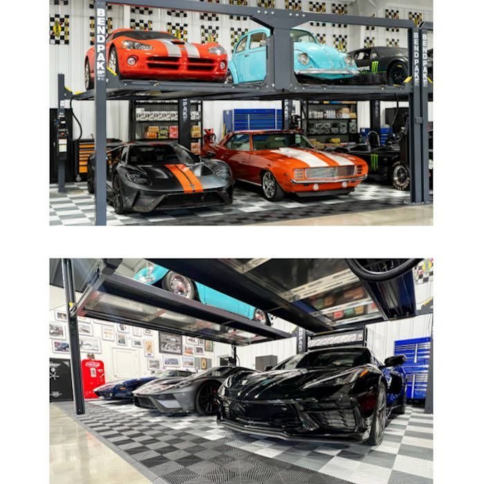 BendPak’s newest PL-12000DP and PL-12000DPS parking lifts are revolutionary vehicle storage solutions for those challenged with owning more cars and trucks than parking spaces to store them. They can greatly expand the number of cars in a facility without expanding building space. As the costs of commercial and residential development increase, gaining additional parking spaces in the same usable space provides instant value. These mechanical parking systems are designed to increase parking density and cut costs over traditional parking methods.