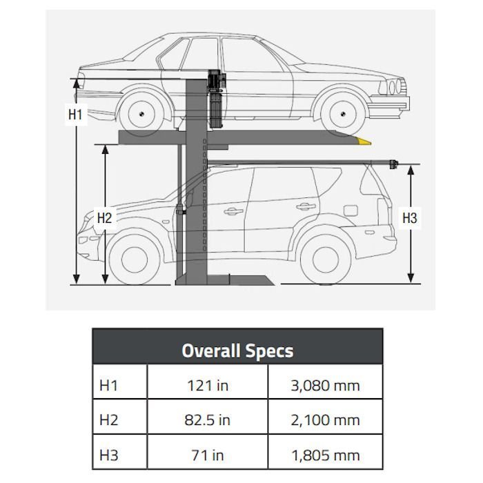 The PL-6000DC dual-column parking lift is designed to accommodate a wide array of vehicles including SUVs, sedans, and sports cars. It offers the perfect combination for both long-term and short-term parking. Typically long-term parking is the upper level and short-term parking below. The PL-6000DC was specifically designed to accommodate the needs of real estate developers, architects, engineers, automotive dealers, and commercial parking operators. The PL-6000DC can be installed inside a typical 8-foot parking space and accommodate most cars and light trucks. They operate in both indoor and outdoor locations.
