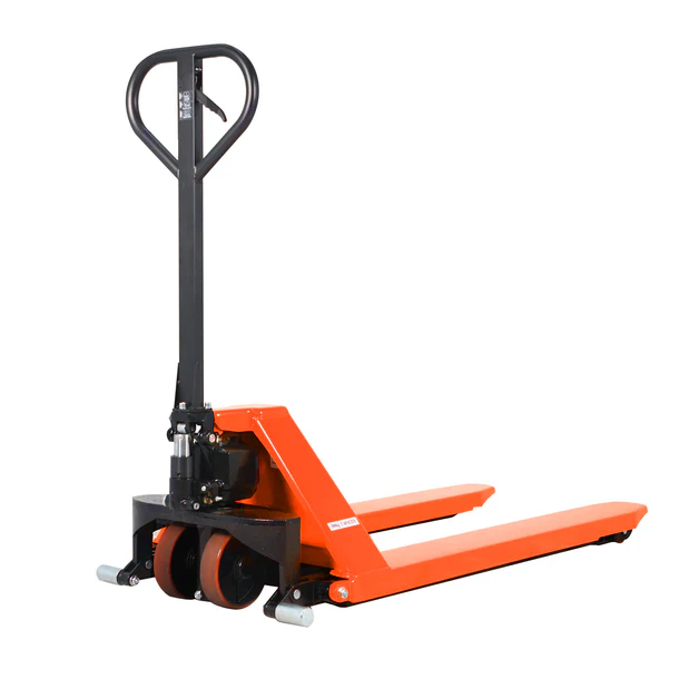 A manual tool for moving pallets in small warehouses or loading docks. Simple, cost-effective, and perfect for lighter tasks where powered options aren’t necessary.