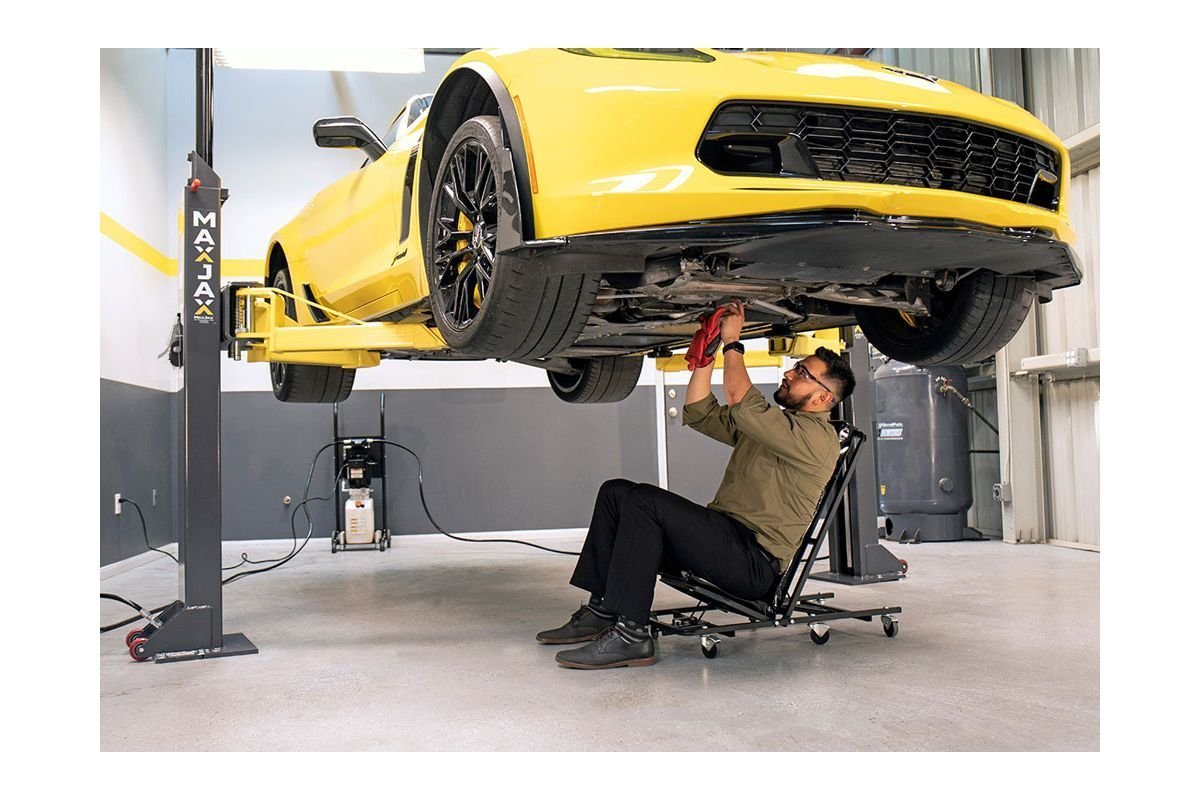 Want under-car clearance without having to rely on a permanent installation? That’s where MaxJax comes in! No other low-rise or mid-rise lift system provides more under-car clearance and unobstructed floor space than the MaxJax lifting system. Now you can easily access engine undersides as well as critical components like transmissions, drive-shafts, starters, differentials, or anything else that would require under-car access.
